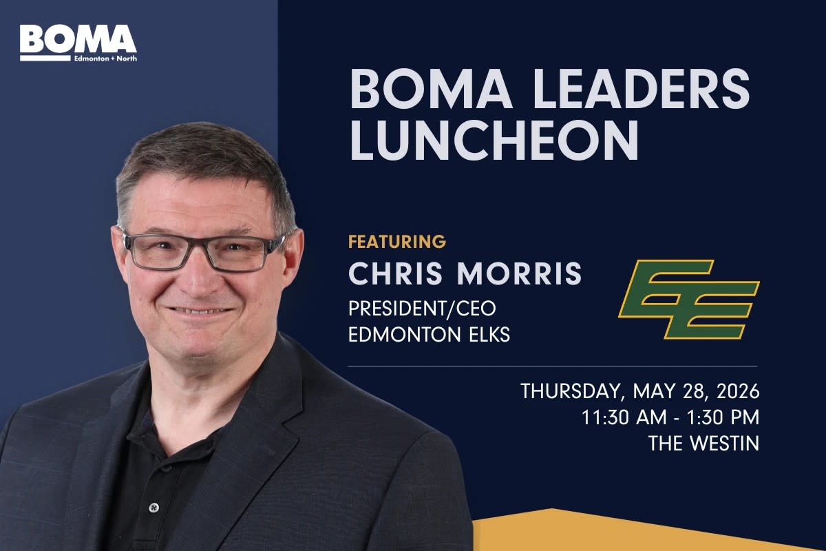 BOMA Leaders Luncheon: Leadership, Legacy, and Building What’s Next: Chris Morris, Edmonton Elks We are proud to welcome Chris Morris, President and Chief Executive Officer of the Edmonton Elks, as keynote speaker at our BOMA Leaders Luncheon on May 28. Chris brings championship experience to the stage as a three-time Grey Cup winner and a highly regarded leader in Canadian football. Under his leadership, the Elks are strengthening their foundation, deepening community partnerships, and redefining what it means to compete, building a performance-driven, culture-led organization focused on long-term success on and off the field.