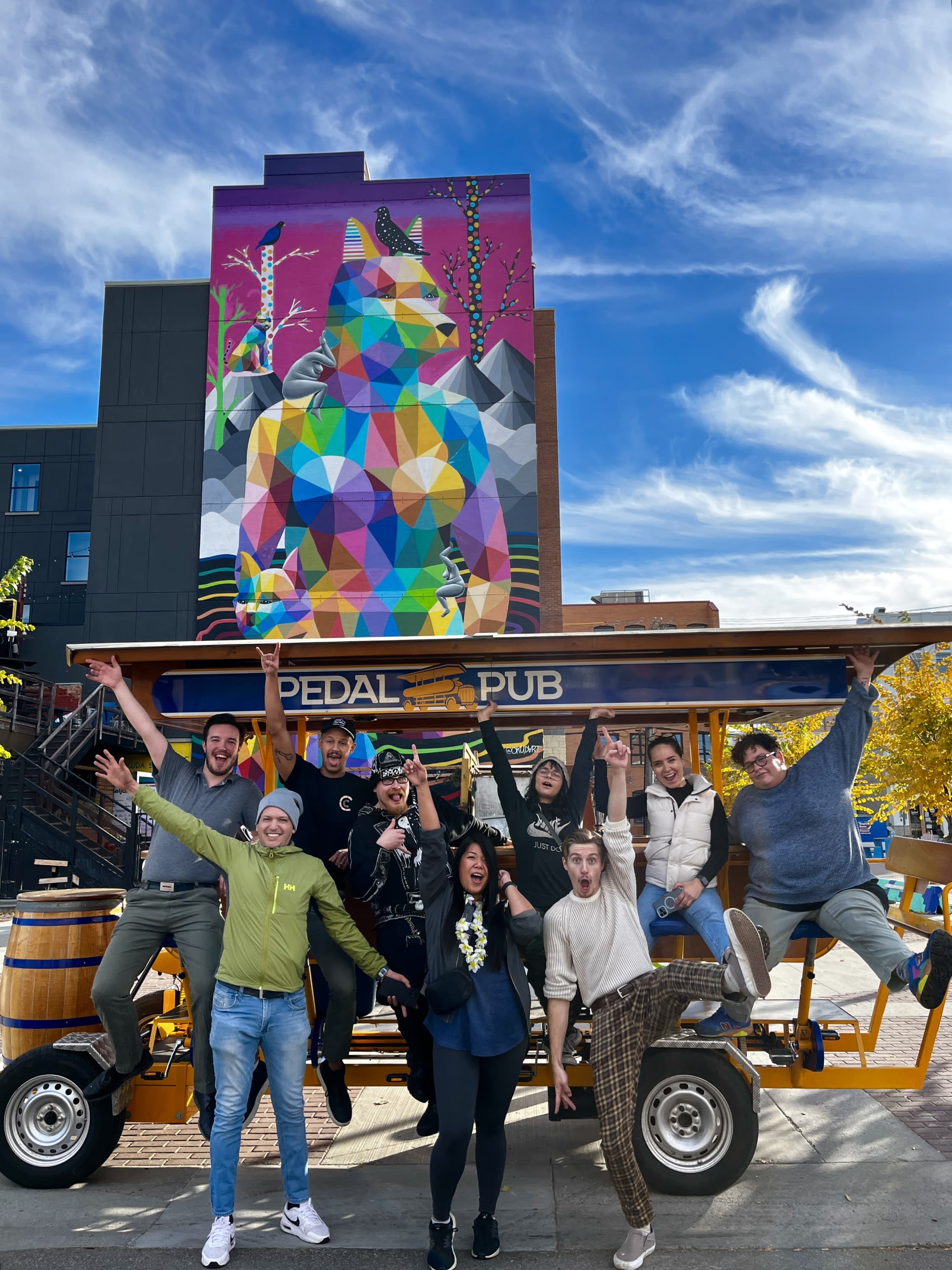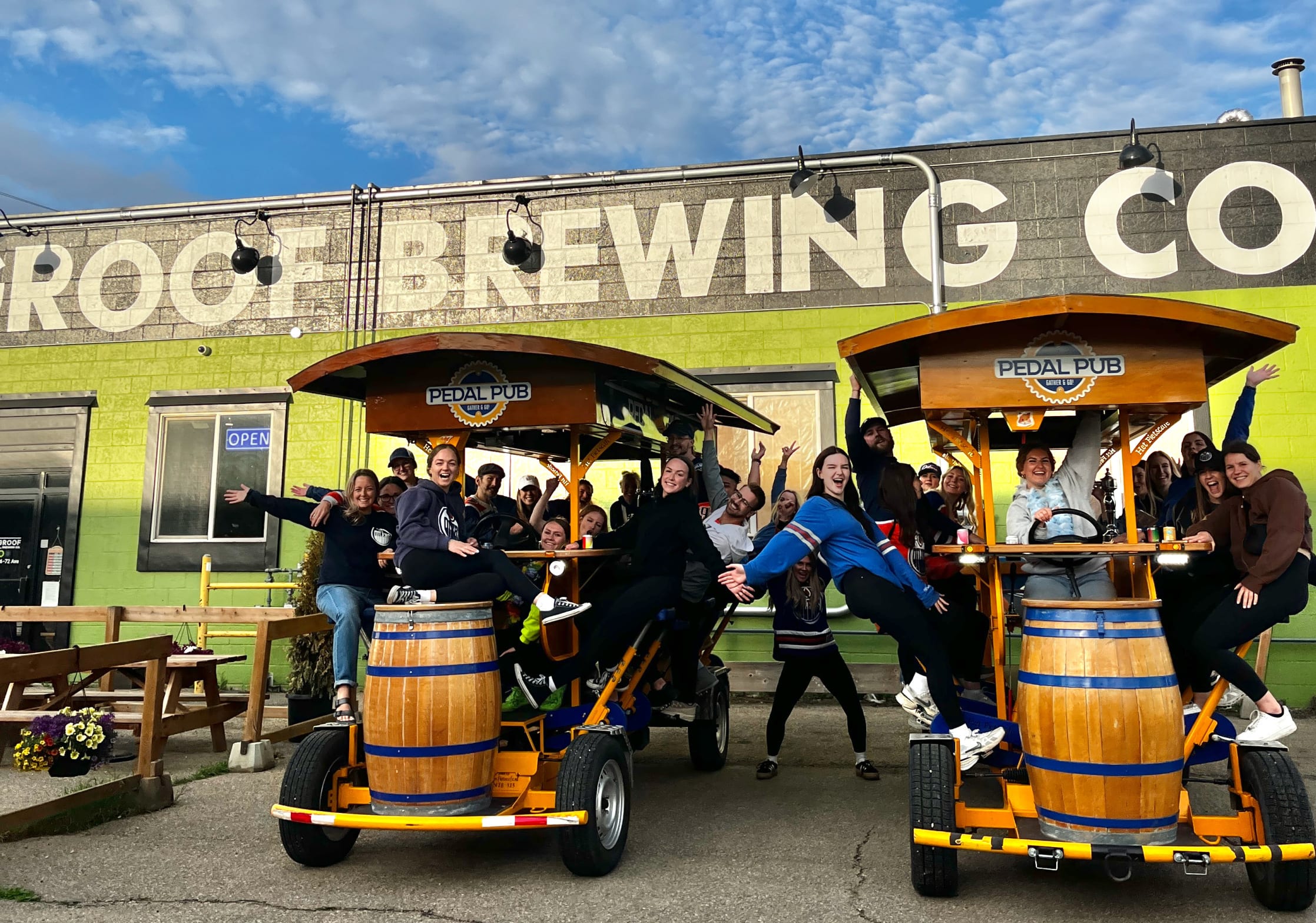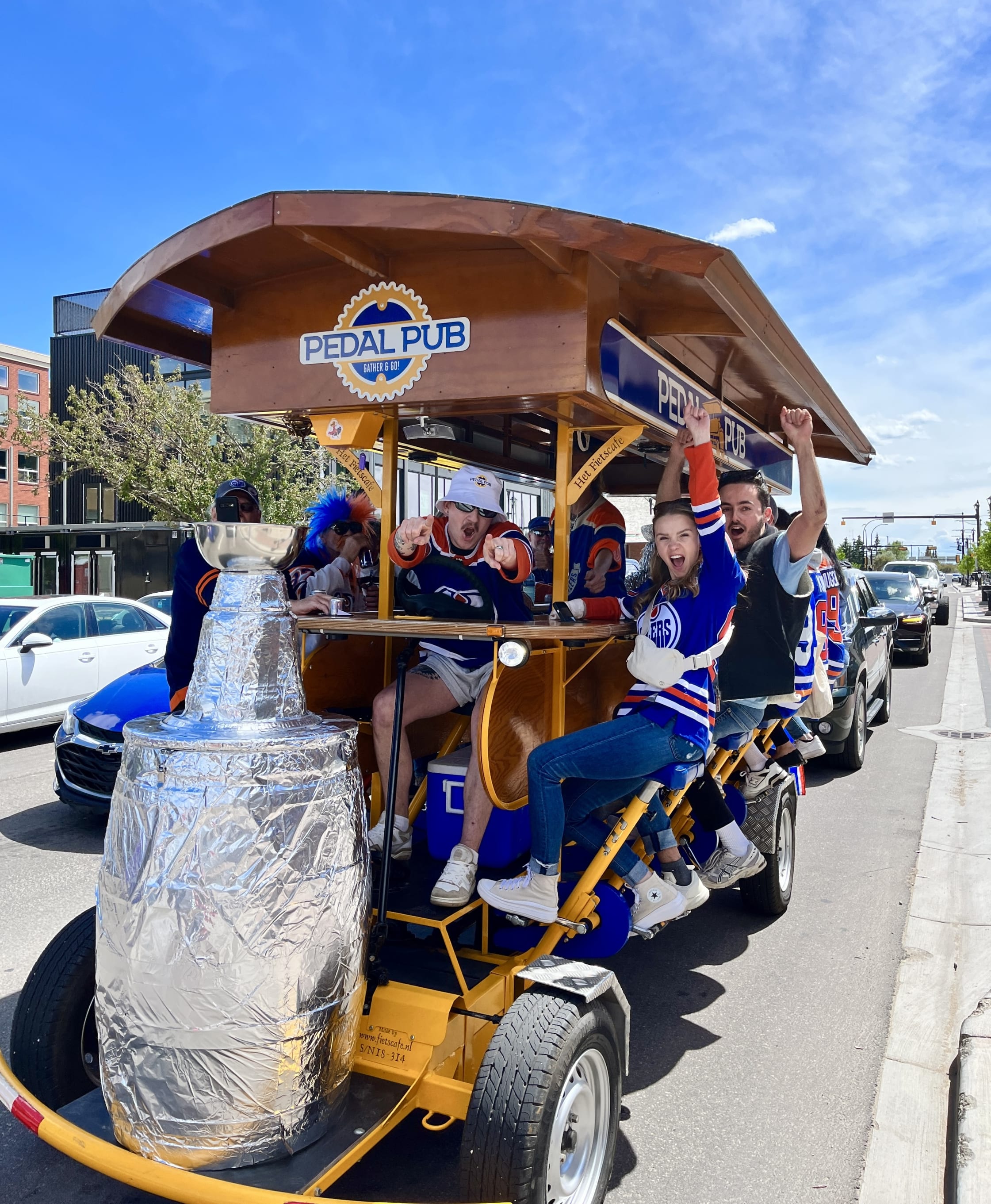 For those looking for an exciting, high-energy, and one-of-a-kind way to experience Edmonton, Pedal Pub delivers a standout group adventure. As the city’s premier pedal-powered-patio experience, we offer a dynamic and engaging way to explore Edmonton’s best bars, breweries, and entertainment hotspots—all while bringing people together for a shared, memorable experience. Hop aboard our 15-person bike for a two-hour tour filled with great drinks, lively company, and unbeatable energy. Whether you're planning a corporate outing, team-building event, client appreciation experience, or just looking for a fresh way to celebrate with friends, Pedal Pub makes for an unforgettable ride. Book a private tour for your group or join a public ride and connect with fellow adventurers as you pedal through the city’s vibrant social scene. With music pumping, drinks flowing, and the city’s best stops along the way, Pedal Pub Edmonton is the perfect blend of fun, connection, and exploration.